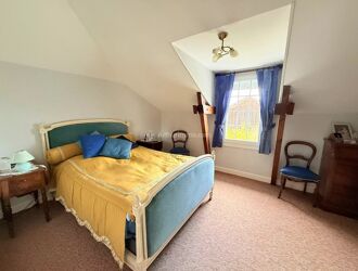 Au premier étage, deux chambres confortables et des combles aménageables offrent des possibilités de rangement ou d’extension de l’espace.